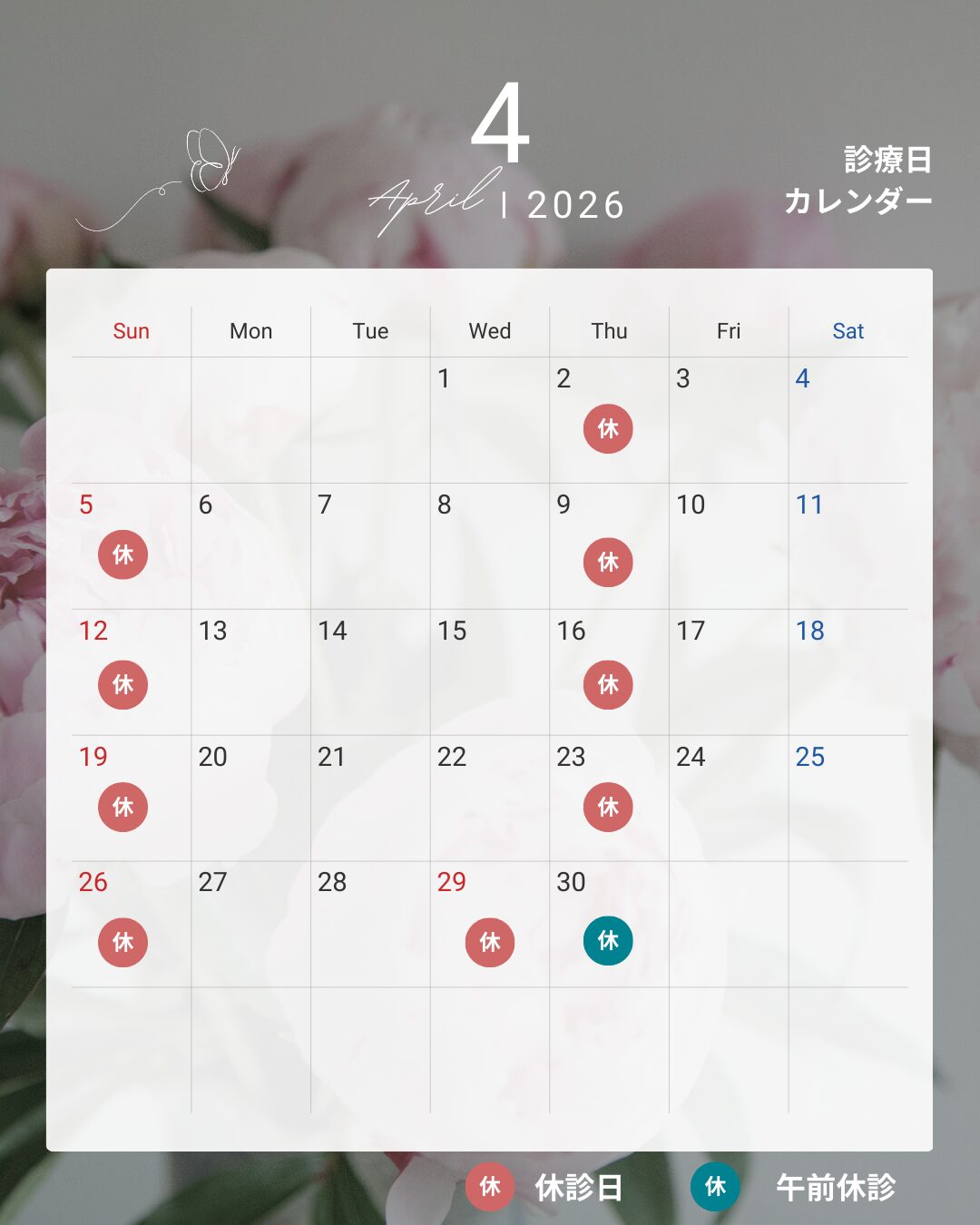 🌸4月診療日のお知らせ🌸